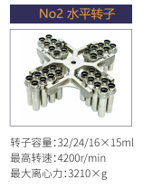 No2 | 水平轉(zhuǎn)子 | 32/24/16x15ml | 4200r/min | 3210xg |