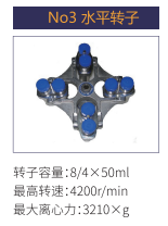 No3 | 水平轉(zhuǎn)子 | 8/4x50ml | 4200r/min | 3210xg |