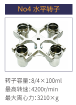 No4 | 水平轉(zhuǎn)子 | 8/4x100ml | 4200r/min | 3210xg |
