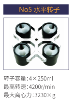 No5 | 水平轉(zhuǎn)子 | 4x250ml | 4200r/min | 3230xg |