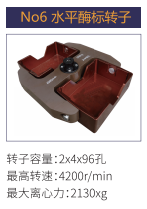 No6 | 水平酶標(biāo)轉(zhuǎn)子 | 2x4x96孔 | 4200r/min | 2130xg |