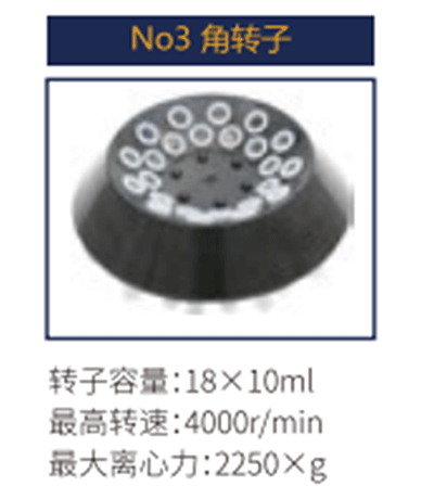 No3 | 角轉子 | 18X 10ml | 4000 r/min | 2250Xg |